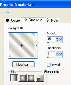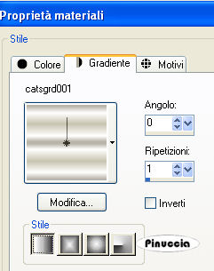 Imposta il colore di primo piano su Gradiente, e seleziona il gradiente catsgrd001 con i seguenti settaggi.