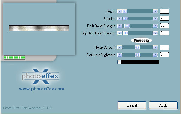Effetti>Plugins>Photo Effex - Scanlines, con i settaggi precedenti.