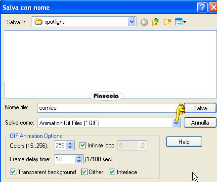 Clicca su Save e salva la cornice in formato Animation Gif Files: