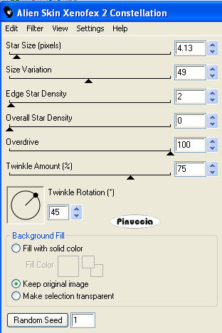 Ripeti l'Effetto Constellation, cambiando Star Size con 3.13 e cliccando una volta su Random Seed.