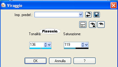 Regola>Tonalità e Saturazione>Viraggio, con i settaggi precedenti.