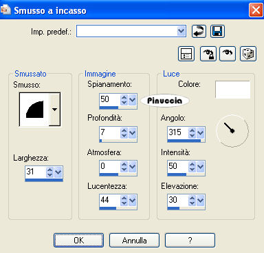 Effetti>Effetti 3D>Smusso a incasso, con i settaggi precedenti.