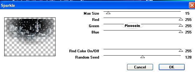 Ripeti l'Effetto Sparkle, cambiando Random Seed con 128.