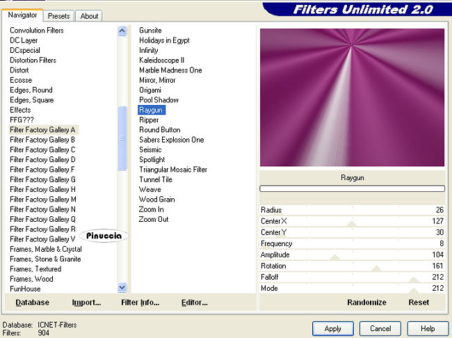Effetti>Plugins>Filters Unlimited - Filter Factory Gallery A - Raygun:
