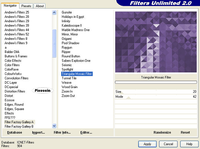 Effetti>Plugins>Filters Unlimited 2 - Filter Factory Gallery A - Triangular Mosaic.