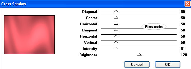 Effetti>Plugins>Graphics Plus - Cross Shadow con i seguenti settaggi.