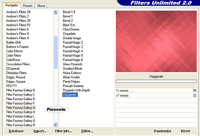 Effetti>Plugins>Filters Unlimited 2.0 - Filter Factory Gallery G - Xaggerate: