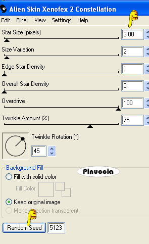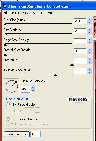 Ripeti l'Effetto Constellation, potando Star Size a 3.00 e cliccando una volta su Random Seed.