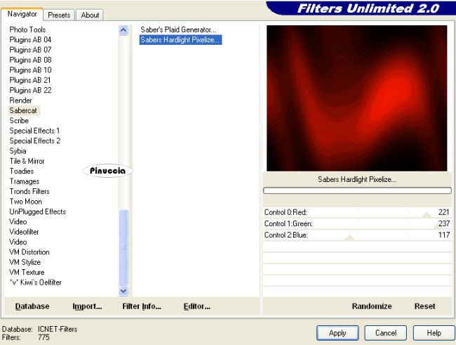 Effetti>Plugins>Filters unlimited - Sabercat - Sabers Hardlight Pixelize.
