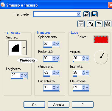 Effetti>Effetti 3D>Smusso a incasso, con il colore di primo piano #e50704.