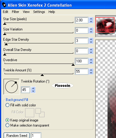 Ripeti l'Effetto Constellation, cambiando Star Size con 3,00, e premendo una volta Random Seed.