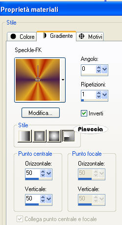 Passa il colore di primo piano a Gradiente e seleziona il gradiente Speckle-FK con i seguenti settaggi.