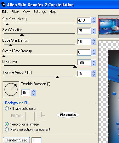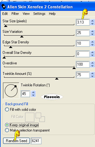 Ripeti l'Effetto Constellation cambiando Star Size con 3,13 e cliccando una volta su Random Seed.