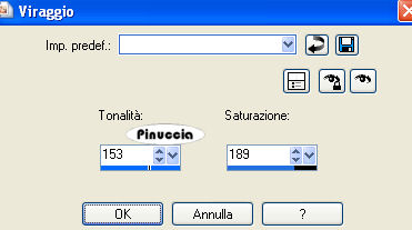 Regola>Tonalità e saturazione>Viraggio, con i tuoi colori; i miei settaggi: