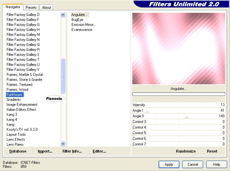 Effetti>Plugins>Filters Unlimited 2.0 - Funhouse - Angulate, con i settaggi precedenti.