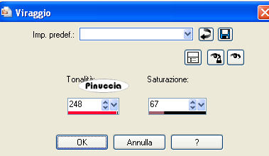 Regola>Tonalità e saturazione>Viraggio, con i settaggi precedenti.