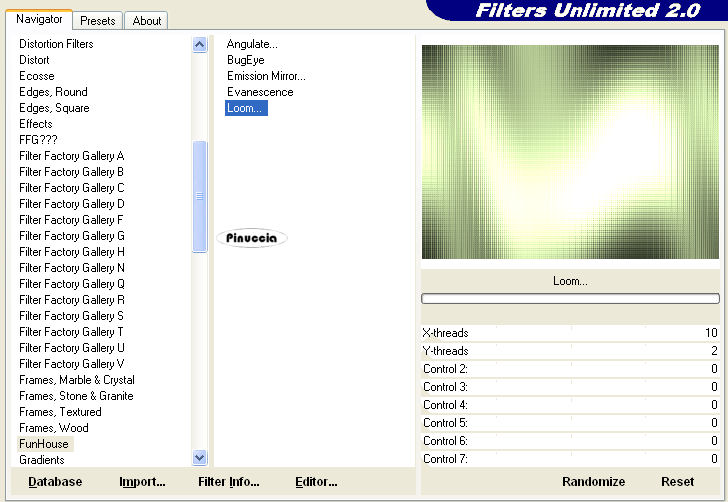Effetti>Plugins>Filters Unlimited - Funhouse - Loom, con i settaggi precedenti.