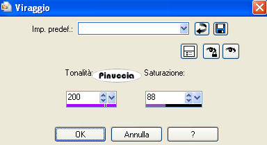 Regola>Tonalità e saturazione>Viraggio, con i settaggi precedenti.
