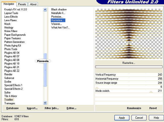 Effetti>Plugins>Filters Unlimited - Toadies - Rasterline.
