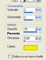 Effetti>Effetti 3D>sfalsa ombra, con un colore chiaro scelto dall'imamgine, il mio #f3f105.