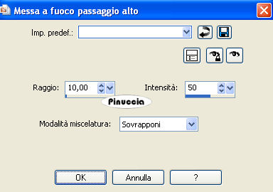 Regola>Messa a fuoco>Messa a fuoco passaggio alto, con i settaggi precedenti.