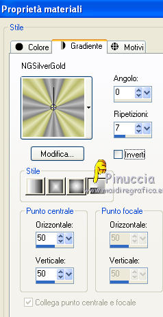 seleziona il gradiente NGSilverGold, con i seguenti settaggi: