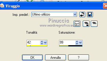 Regola>Tonalità e saturazione>Viraggio, con i settaggi precedenti.