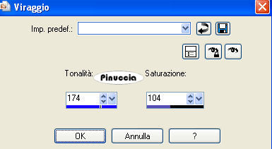 Regola>Tonalità e saturazione>Viraggio, con i settaggi precedenti.