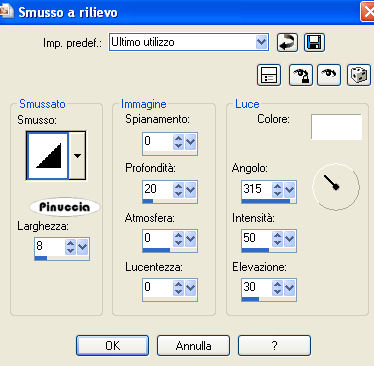 Effetti>Effetti 3D>Smusso a rilievo, con i settaggi precedenti.