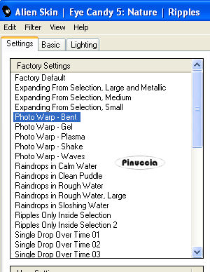 Effetti>Plugins>Alien skin Eye Candy 5 Nature - Ripples;