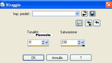 Regola>Tonalità e saturazione>Viraggio, con settaggi corrispondenti a un colore della tua immagine.