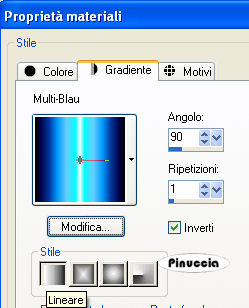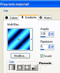 Passa il colore di primo piano a Gradiente e seleziona il gradiente Multi-Blau con i seguenti settaggi: