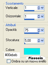 Effetti>Effetti 3D>Sfalsa ombra, con il colore #00ebeb.