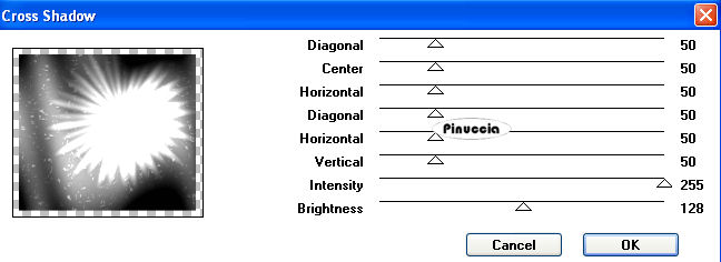 Effetti>Plugins>Graphics Plus - Cross shadow, con i settaggi precedenti.