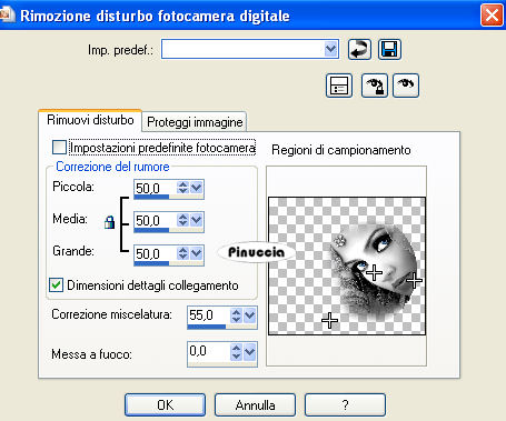 In PSP 9: Regola>Correzione fotografica>Rimozione disturbo fotocamera digitale