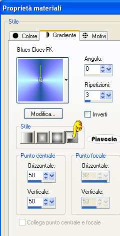 Imposta il colore di sfondo a Gradiente e seleziona il gradiente Blues Clues-FK con i seguenti settaggi.