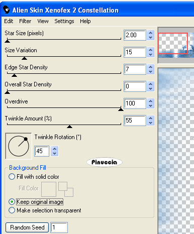 Ripeti l'Effetto Constellation con gli stessi settaggi ma cliccando una volta su Random Seed.