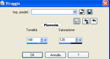 Regola>Tonalità e saturazione>Viraggio, con i settaggi precedenti.