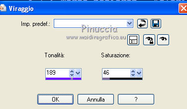 Regola>Tonalità e saturazione>Viraggio, con i settaggi precedenti.