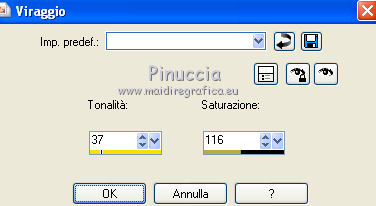 Regola>Tonalità e saturazione>Viraggio, con i settaggi precedenti.