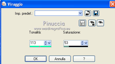 Per il mio tube: Regola>Tonalità e saturazione>Viraggio.