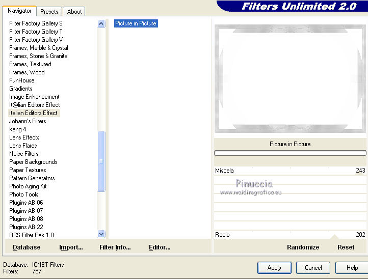 Effetti>Plugins>Filters Unlimited - Italian Editors Effect - Picture in Picture.