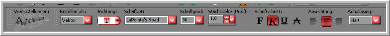 questi i settaggi usati da Christa con PSP 9. Dovrai regolare la dimensione in base al tuo testo e alla versione di PSP che stai usando