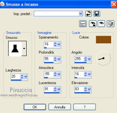 Effetti>Effetti 3D>Smusso a incasso, con il colore di primo piano #894e0e.