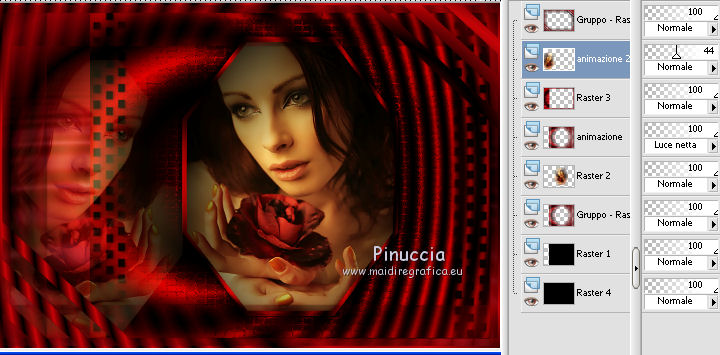 Rinomina questo livello "animazione 2" e abbassa l'opacità al 44%.