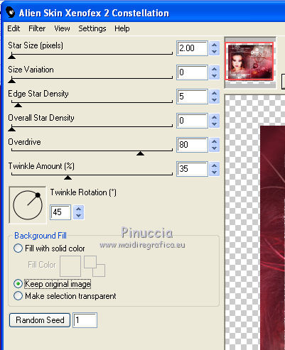 Ripeti l'Effetto Constellation con gli stessi settaggi, ma cliccando una volta su Random Seed.