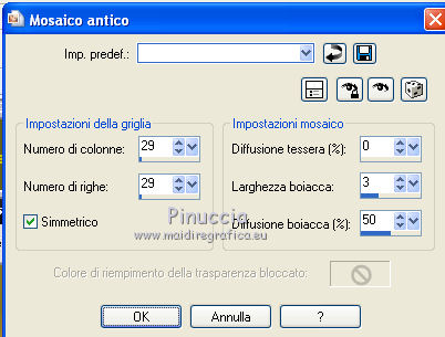 Sul livello dell'ombra: Effetti>Effetti di trama>Mosaico antico, con i settaggi precedenti.