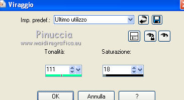 Regola>Tonalità e saturazione>Viraggio, con i settaggi precedenti.