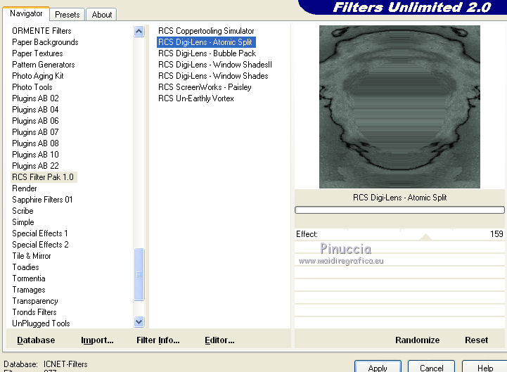 Effetti>Plugins>Filters Unlimited 2.0 - RCS Filter Pak 1.0 - RCS Digi-Lens - Atomic Split.