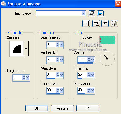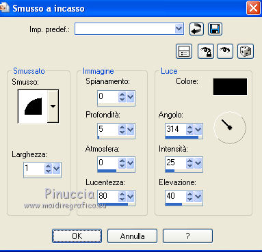 Effetti>Effetti 3D>Smusso a incasso, con i settaggi precedenti ma con il colore di primo piano.